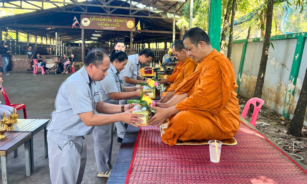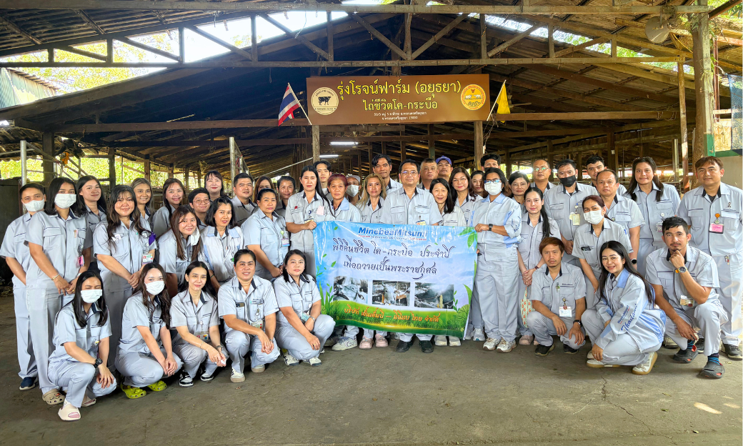 On 4 December 2025, executives, employees, and Joint Consultative Committee (JCC) of MinebeaMitsumi Group (Thailand) from the Bang Pa-in, Ban Wa 1, Ban Wa 2, Ayutthaya, Rojana, and Lopburi plants jointly contributed a total of 464,000 baht to redeem the lives of eight cattle and eight buffaloes at Rungroj Farm in Phra Nakhon Si Ayutthaya Province.